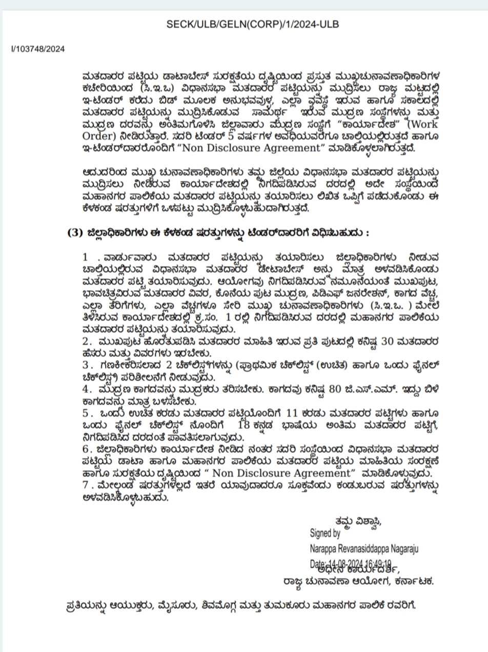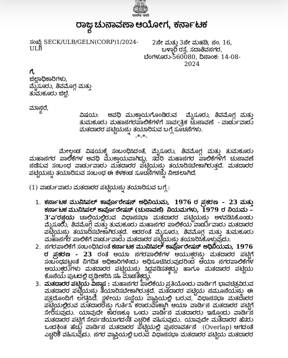 ಅವಧಿ ಮುಕ್ತಾಯಗೊಂಡಿರುವ ಮೈಸೂರು, ಶಿವಮೊಗ್ಗ ಮತ್ತು ತುಮಕೂರು ಮಹಾನಗರಪಾಲಿಕೆಗಳಿಗೆ ಸಾರ್ವತ್ರಿಕ ಚುನಾವಣೆ – ವಾರ್ಡುವಾರು ಮತದಾರರ ಪಟ್ಟಿಯನ್ನು ತಯಾರಿಸುವ ಬಗ್ಗೆ ಸೂಚನೆಗಳು.