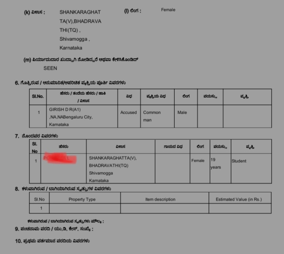 ಬೆಂಗಳೂರಿನ ಕಾಲೇಜುವೊಂದರಲ್ಲಿ ಬಿ.ಇ ವಿದ್ಯಾಭ್ಯಾಸ ಮಾಡುತ್ತಿರುವ ೧೯ ವರ್ಷದ ವಿದ್ಯಾರ್ಥಿನಿಯೊಬ್ಬಳು ದಿನಾಂಕ 23/1/2025 ರಂದು ಜ್ಞಾನಭಾರತಿ ಪೊಲೀಸ್ ಠಾಣೆ ಹಾಜರಾಗಿ ಗಿರೀಶ್ ತನ್ನನ್ನು ಮದುವೆಯಾಗುವುದಾಗಿ ನಂಬಿಸಿ 25/1/2025 ರಿಂದ ಜುಲೈ 2025 ರ ವರೆಗೂ ನನ್ನನ್ನು ದೈಹಿಕವಾಗಿ ಬಳಸಿಕೊಂಡಿದ್ದು, ಇದೀಗ ಮದುವೆಯಾಗದೆ, ನನ್ನ ಖಾಸಗಿ ಪೋಟೊಗಳನ್ನು ಇಟ್ಟುಕೊಂಡು ಬೆದರಿಕೆ ಹಾಕುತ್ತಿದ್ದಾನೆ ಎಂದು ದೂರು ನೀಡಿದ್ದಾರೆ.